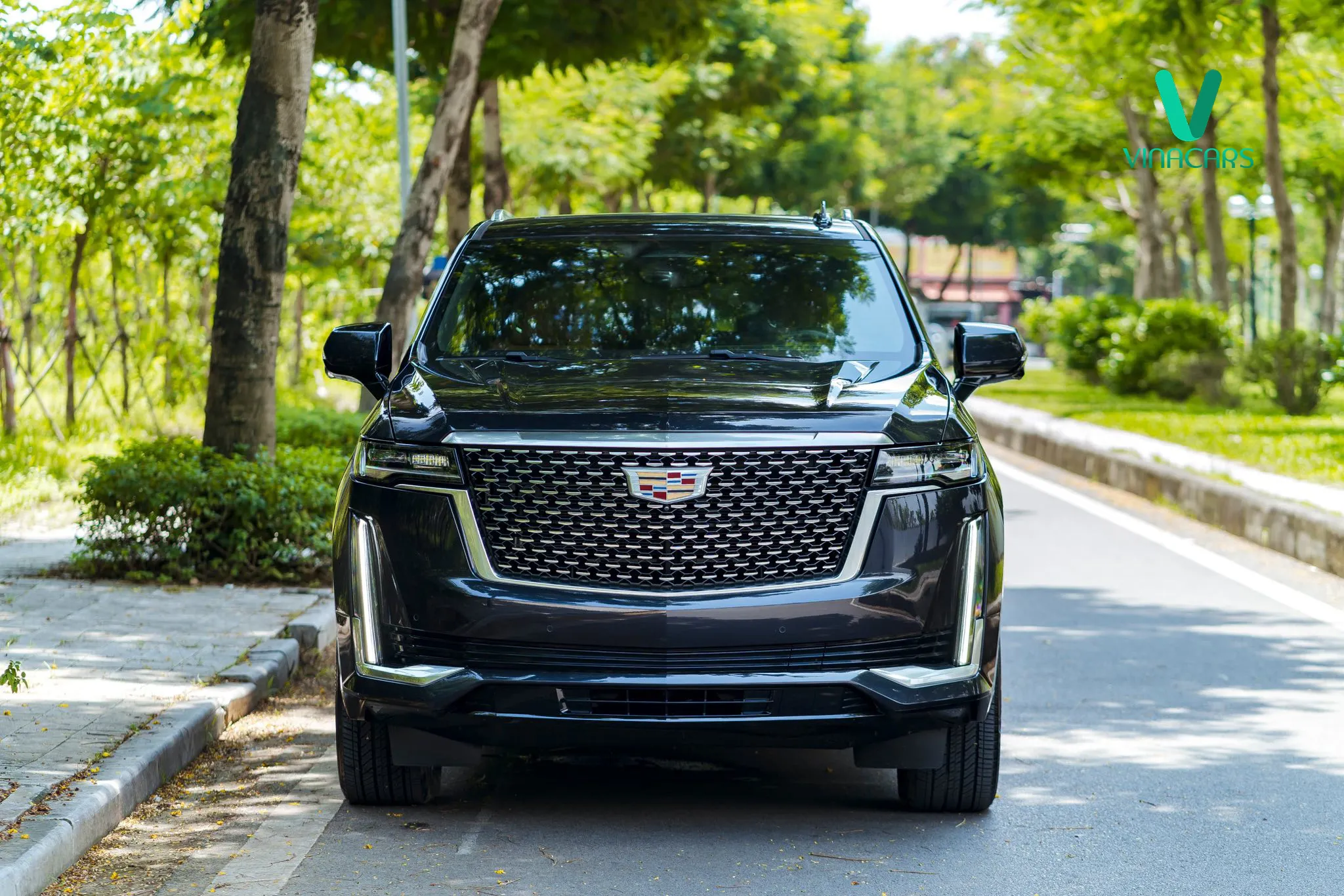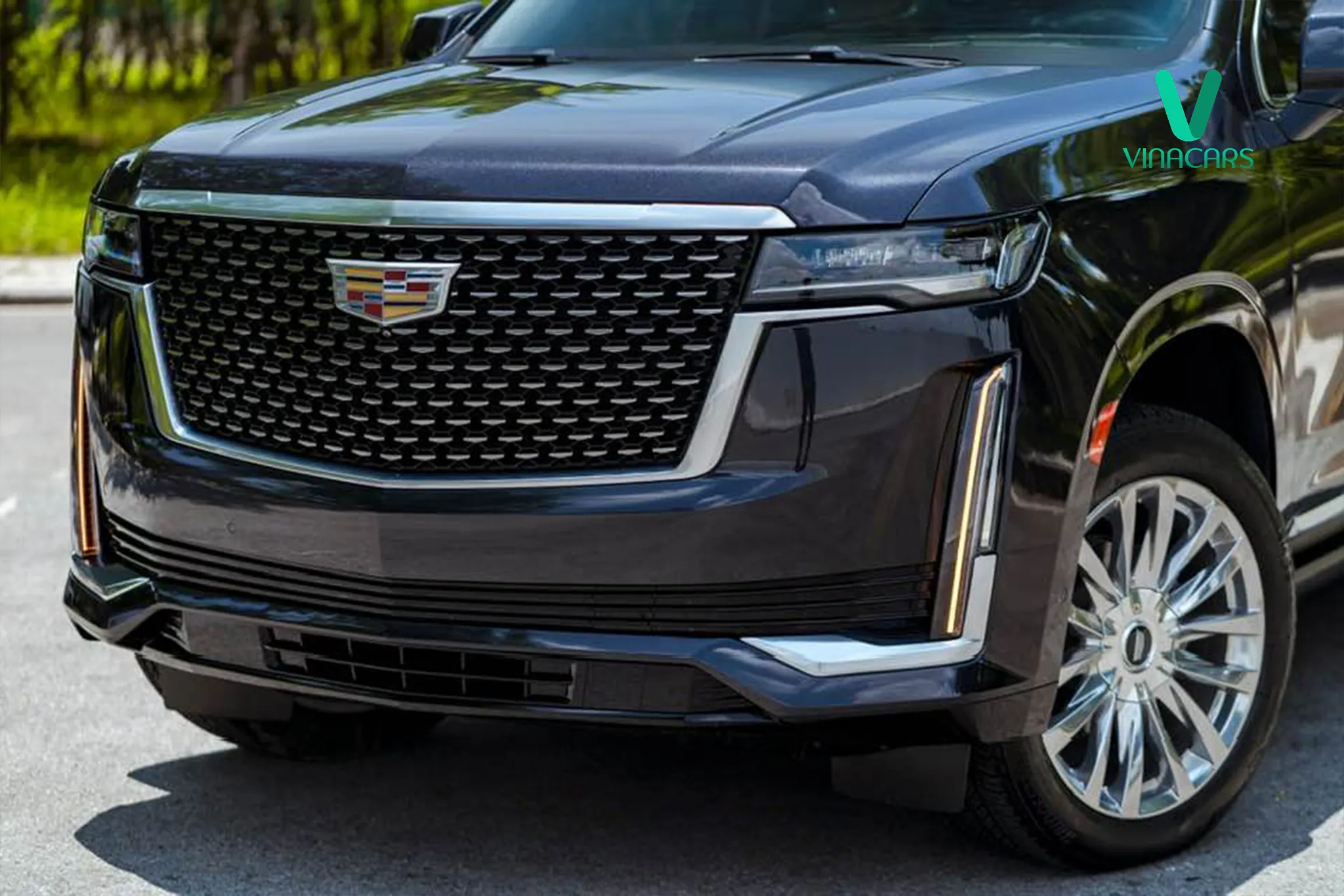Phần đầu xe là lưới tản nhiệt lớn với các họa tiết dạng kim cương mạ chrome sáng bóng. Logo Cadillac hình chiếc khiên to bản đặt chính giữa.
