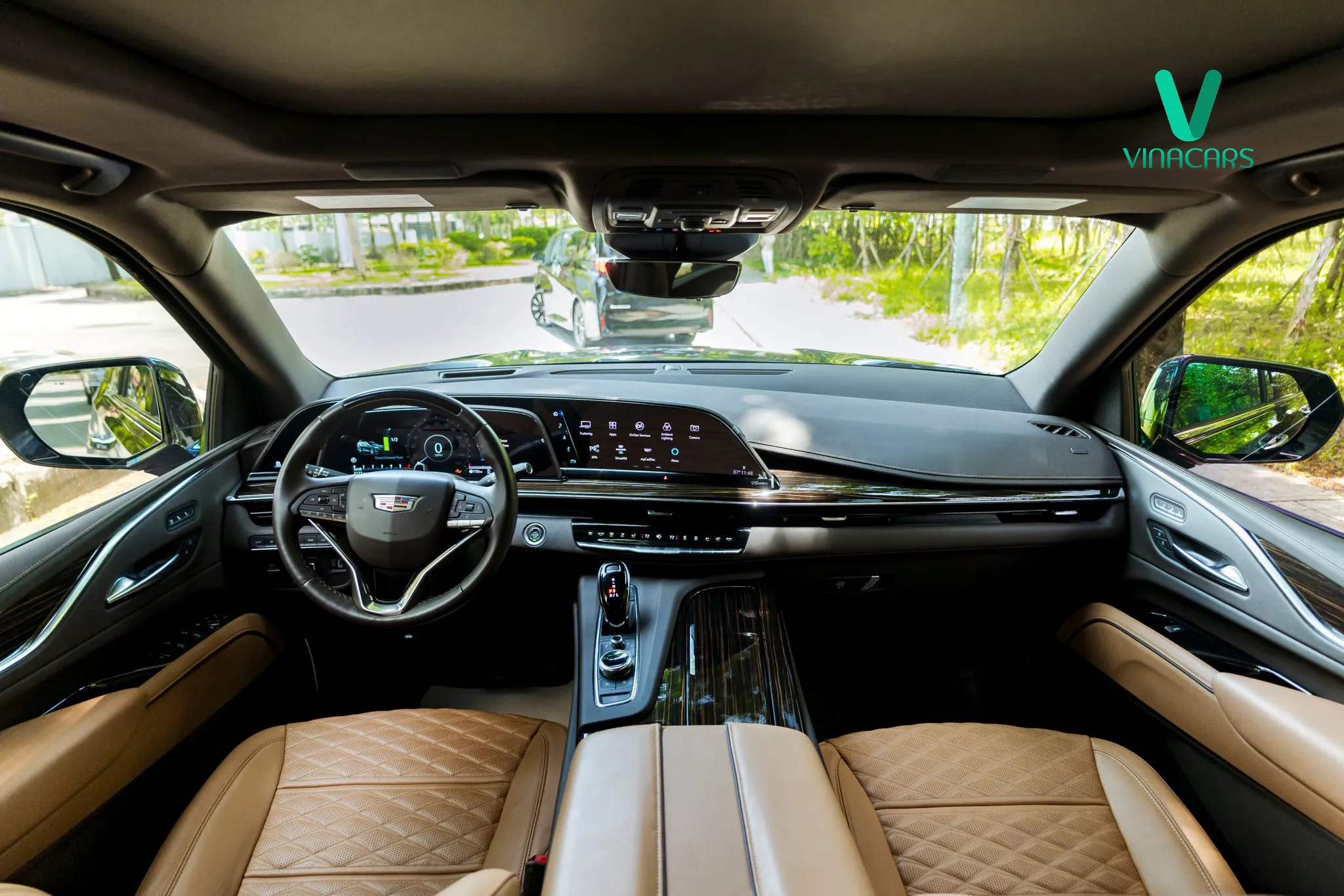 Nội thất Escalade thế hệ thứ 6 được thiết kế lại hoàn toàn, hiện đại, tinh tế và sang trọng hơn. Vô-lăng ba chấu bọc da, ốp gỗ. Vô-lăng này cũng kèm nhiều phím chức năng như điều khiển hệ thống giải trí, kiểm soát hành trình, ra lệnh bằng giọng nói, sưởi vô-lăng hay cảnh báo va chạm phía trước. Cần số chuyển xuống khu vực bệ tỳ tay thay vì đặt sau vô-lăng như thế hệ trước.