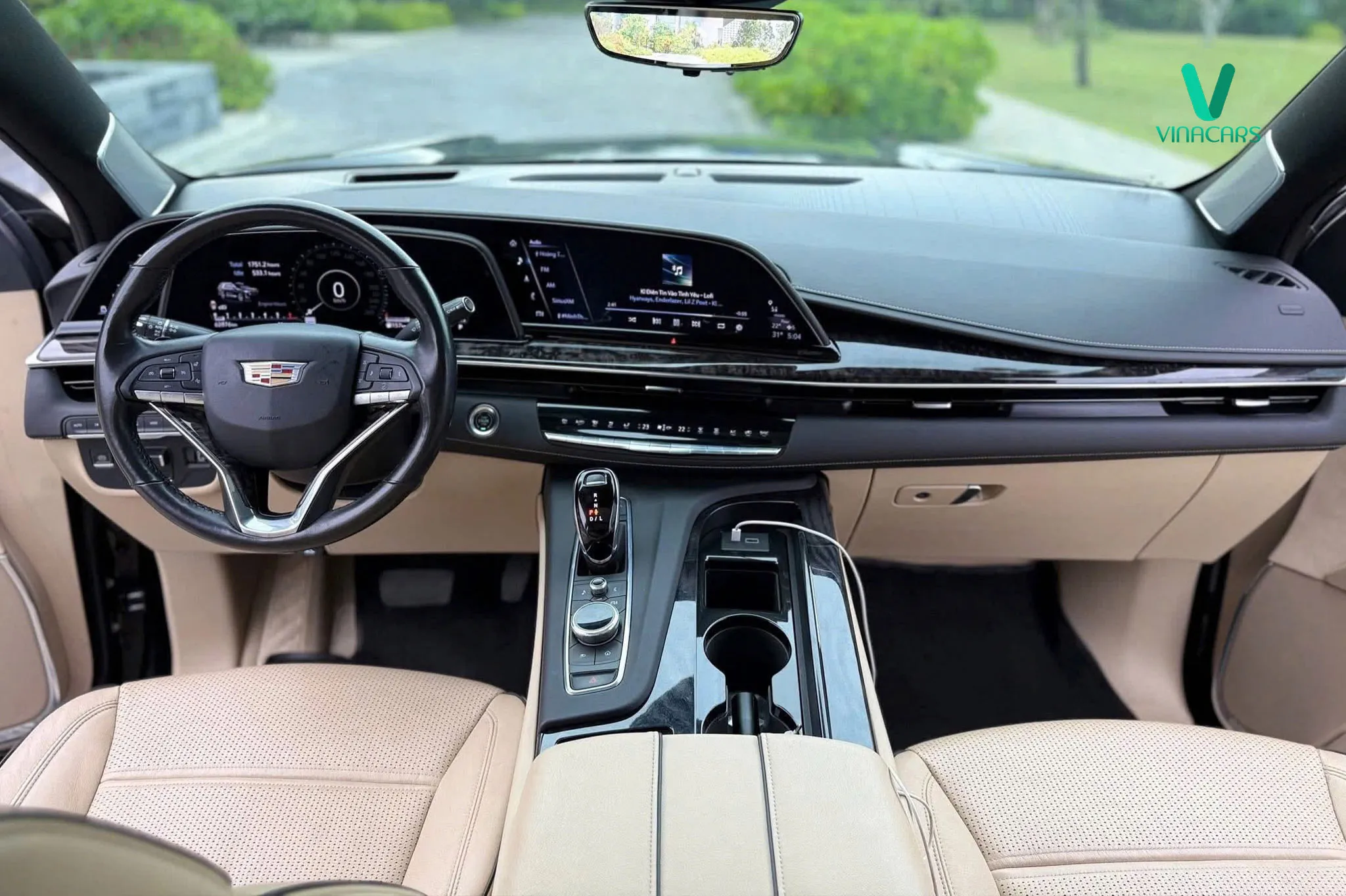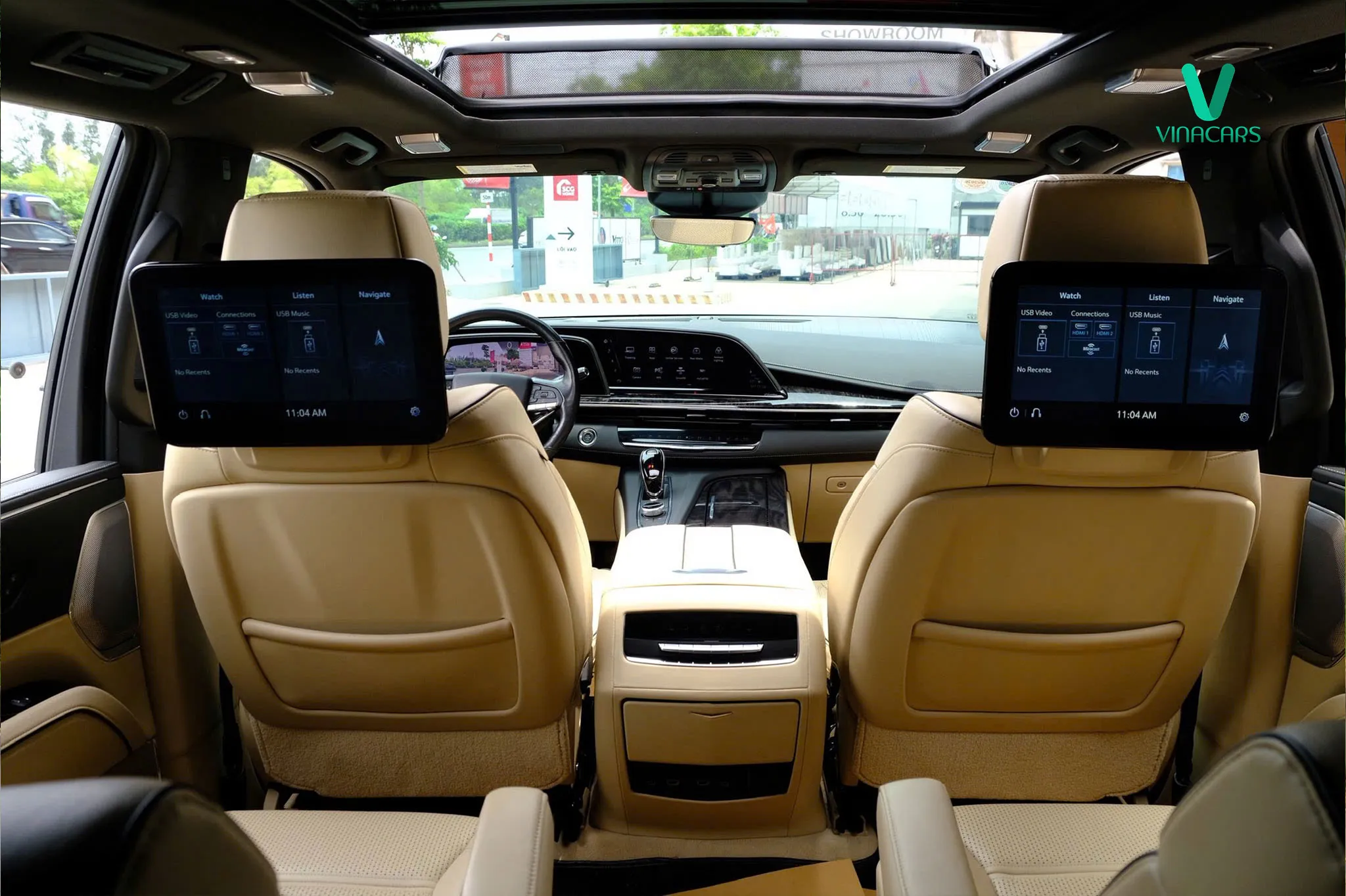 Khoang nội thất của Cadillac Escalade Premium Luxury 600 2021 là nơi sự sang trọng và công nghệ giao thoa. Điểm nhấn trung tâm là màn hình OLED cong với tổng kích thước 38 inch, bao gồm một bảng đồng hồ kỹ thuật số 14.2 inch, màn hình trung tâm 16.9 inch cho hệ thống thông tin giải trí và một màn hình điều khiển 7.2 inch nhỏ hơn. Hệ thống này mang lại trải nghiệm hiển thị sắc nét và trực quan.