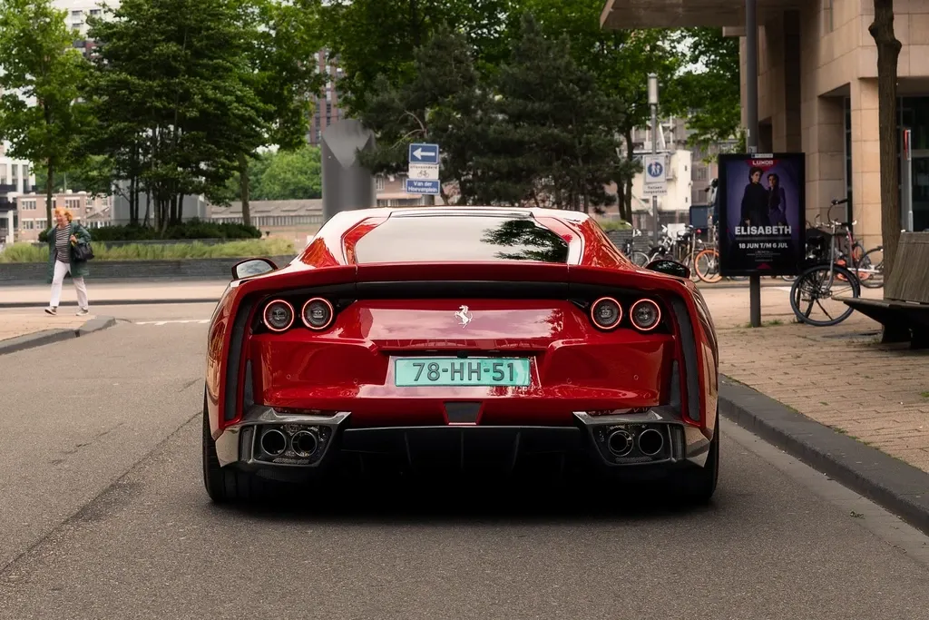 So với phiên bản tiêu chuẩn, Ferrari 812 Novitec N-Largo S sở hữu cánh gió dạng đuôi vịt cố định, kết hợp cùng cánh gió trên mui xe giúp tăng lực ép xuống mặt đường.