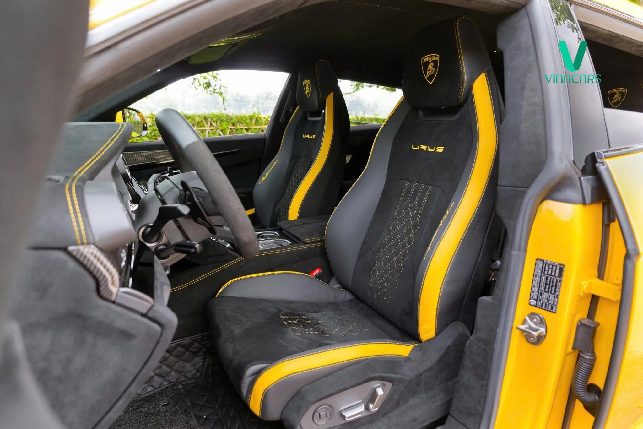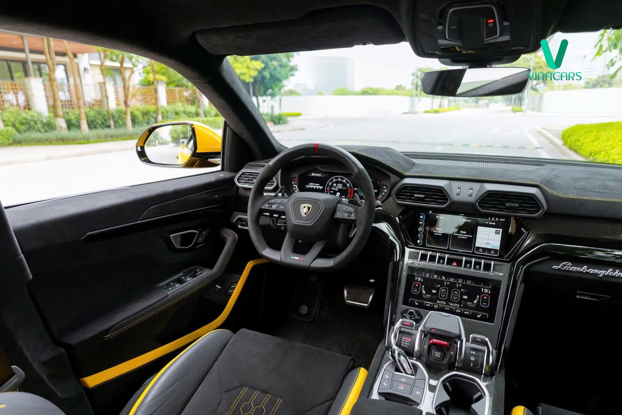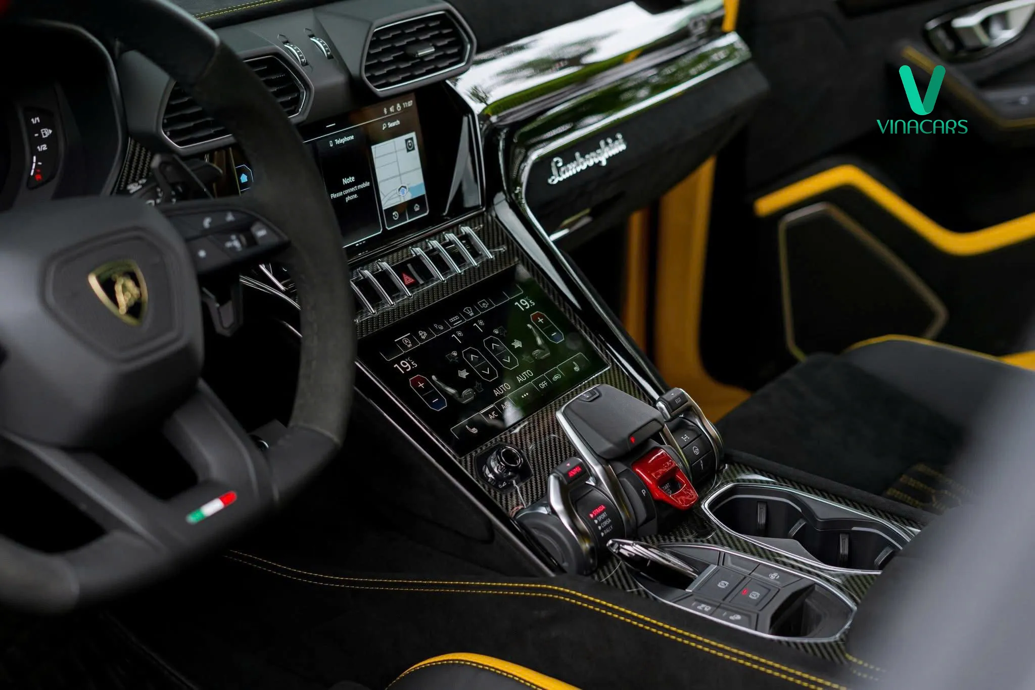 Mặc dù mang phong cách xe đua, Urus Performante vẫn giữ lại đầy đủ các tiện nghi của một chiếc SUV hạng sang. Bảng điều khiển trung tâm được trang bị hai màn hình cảm ứng, một cho hệ thống thông tin giải trí và một cho các chức năng điều hòa.