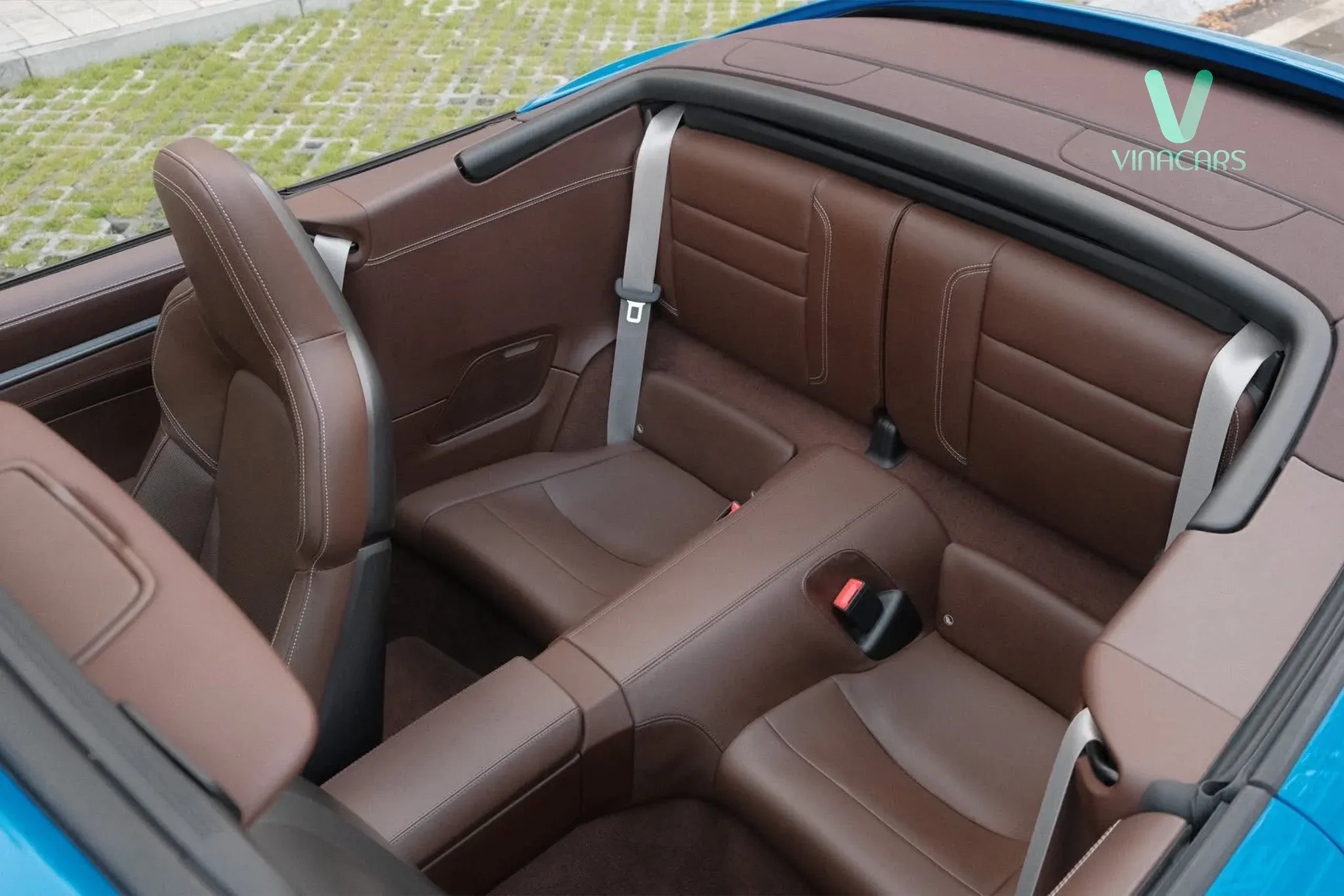 Sự lôi cuốn của chiếc 911 Cabriolet này tiếp tục được thăng hoa khi bước vào khoang lái. Trái ngược với vẻ ngoài sặc sỡ, không gian nội thất mở ra một thế giới vô cùng sang trọng và ấm áp với tông màu Nâu (Truffle Brown) chủ đạo.