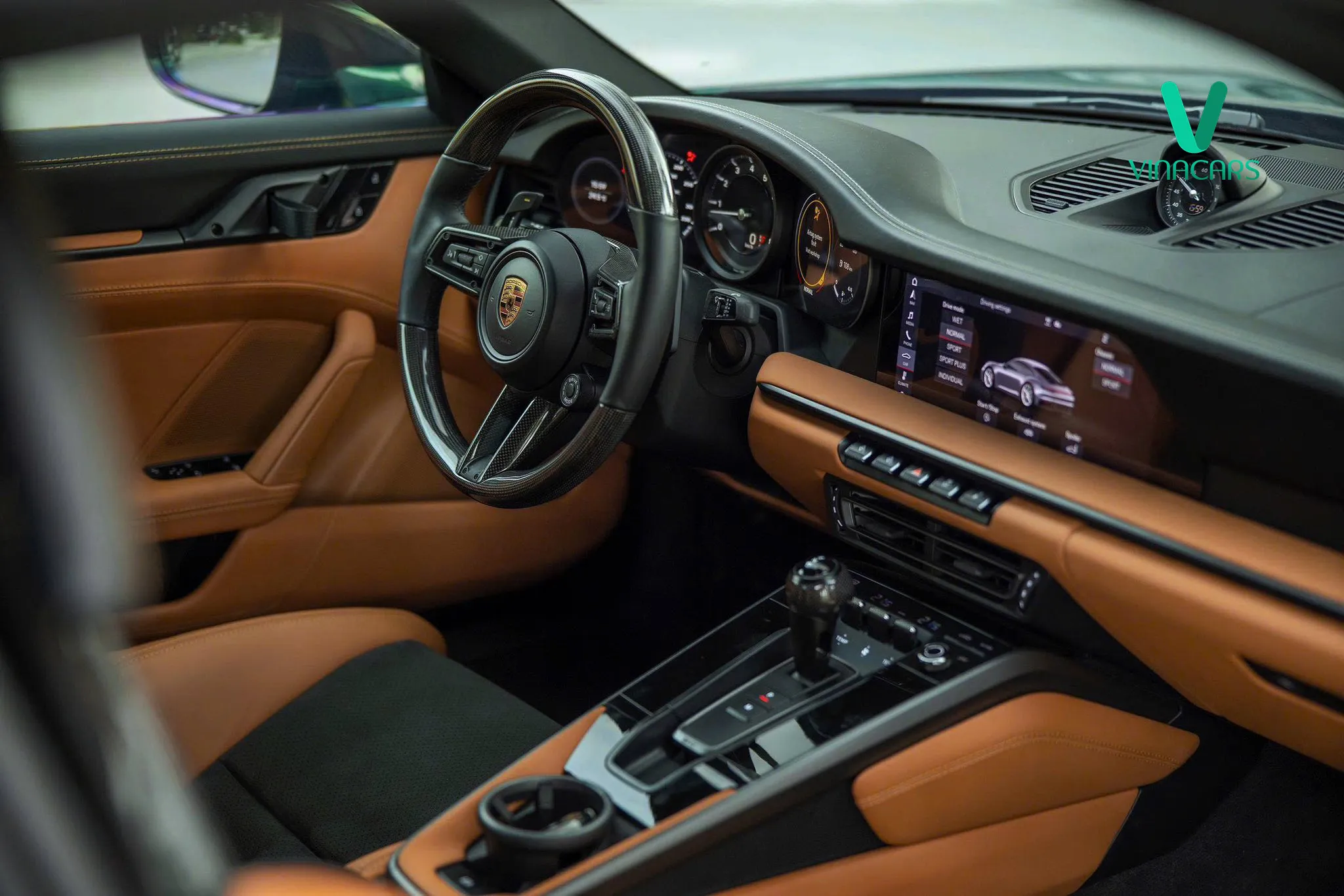 Bước vào bên trong, nội thất của 911 GT3 là một không gian tối giản nhưng cực kỳ cao cấp, nơi mọi chi tiết đều tập trung tối đa vào người lái.