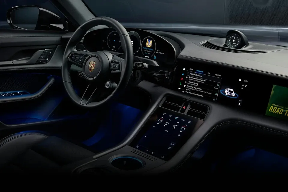 Nội thất của Porsche Taycan Black Edition cũng mang ngôn ngữ thiết kế tương đương ngoại thất, đi kèm huy hiệu "Black Edition" tại khu vực điều khiển trung tâm.
