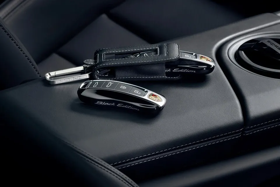 Các chi tiết ngoại thất như ốp gương, viền cửa sổ, huy hiệu... đều được sơn màu đen bóng. Thậm chí, cụm đèn hậu và logo Porsche phát sáng cũng có hiệu ứng màu khói.