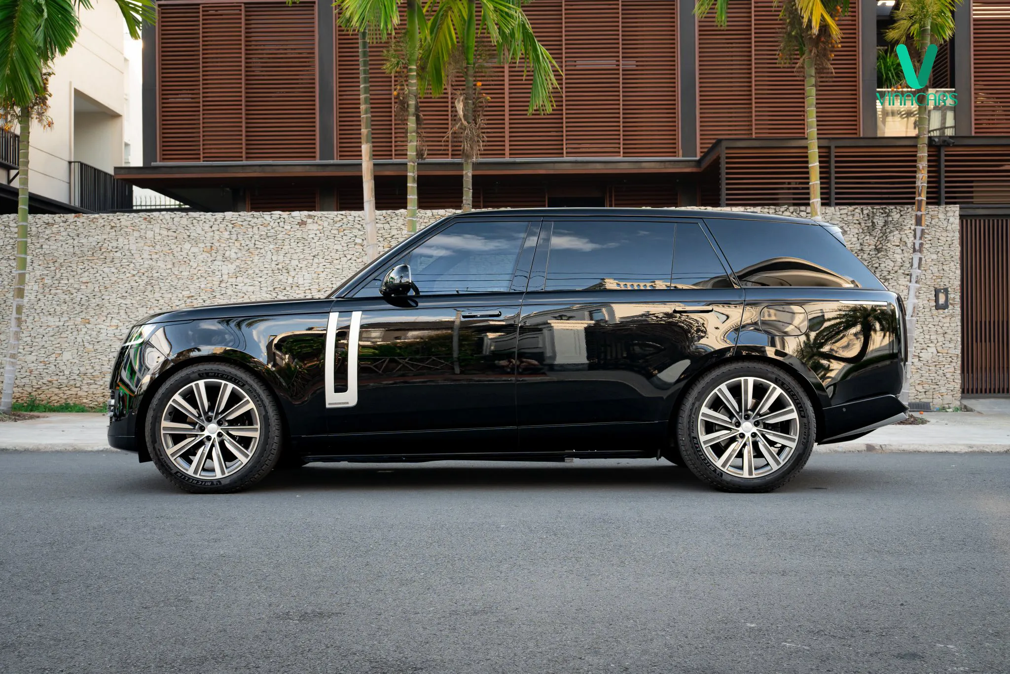 Thân xe là điểm nhấn rõ nét nhất của thế hệ Range Rover mới: tay nắm cửa ẩn hoàn toàn, các bề mặt phẳng lớn cùng đường vai xe dứt khoát mang lại cảm giác liền khối, cao cấp. Phiên bản Autobiography thường được trang bị mâm hợp kim kích thước lớn (21–22 inch), góp phần tăng thêm sự uy nghi cho tổng thể.