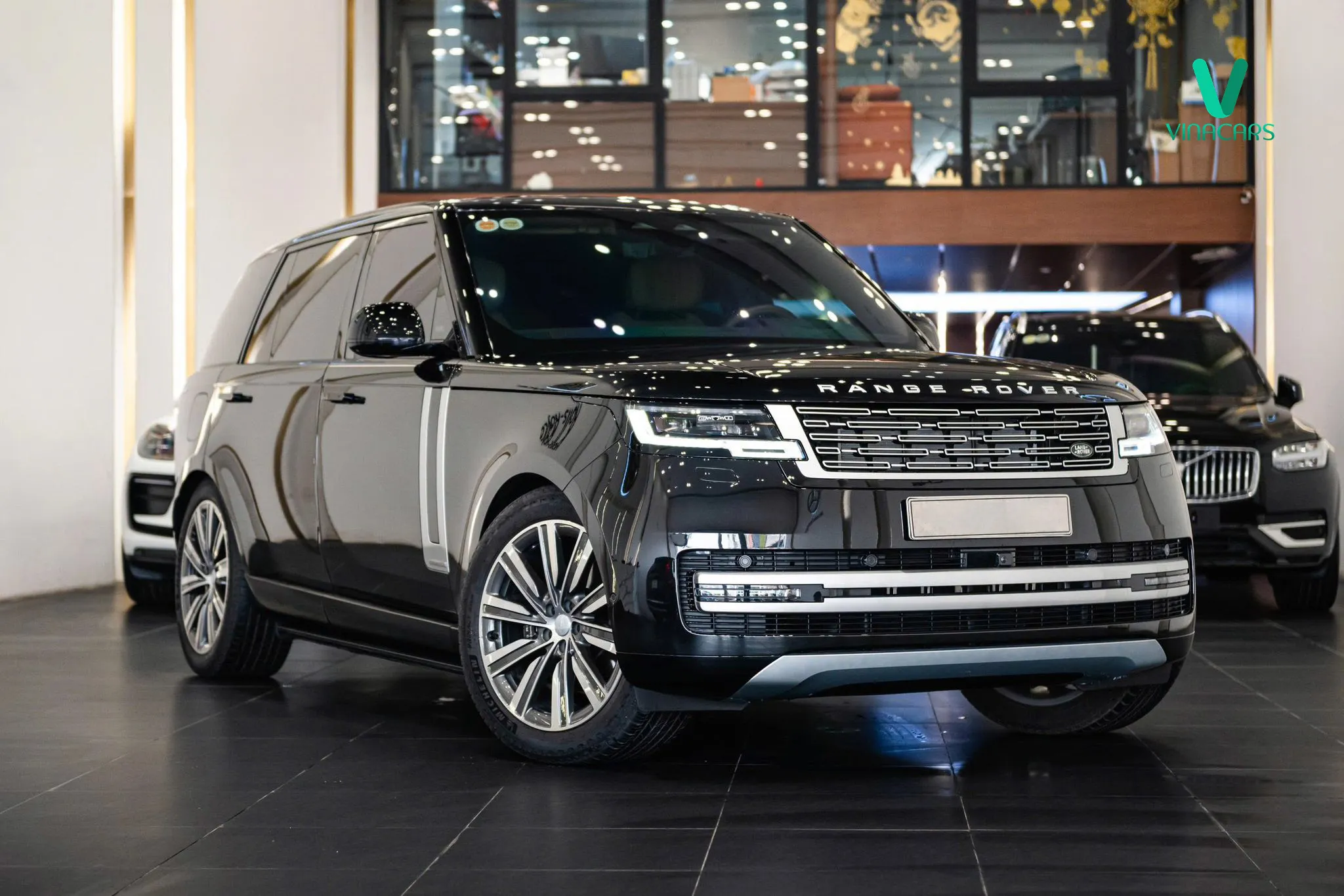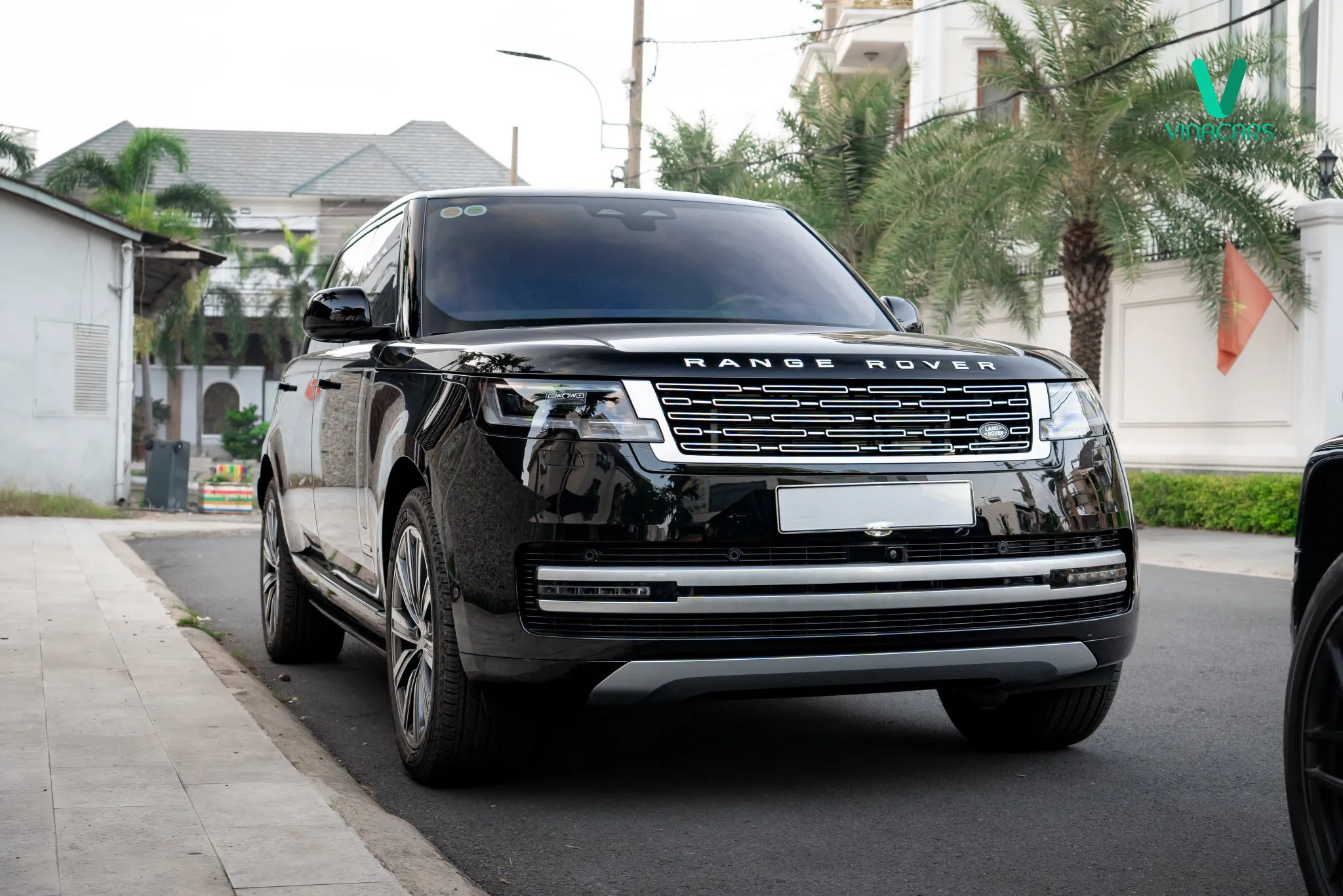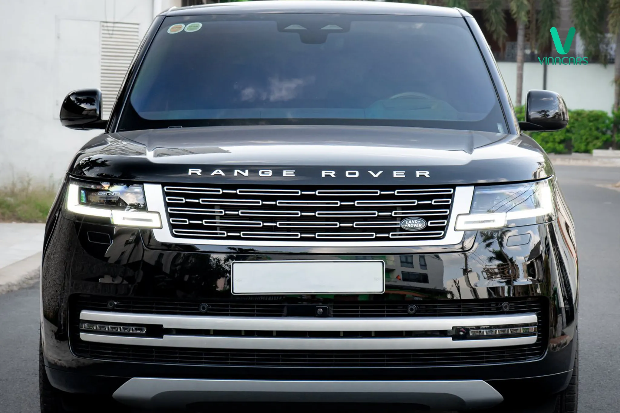 Phần đầu xe nổi bật với lưới tản nhiệt cỡ lớn đặc trưng Range Rover, kết hợp cụm đèn LED mảnh, sắc sảo, tạo nên diện mạo vừa lịch lãm vừa hiện đại.