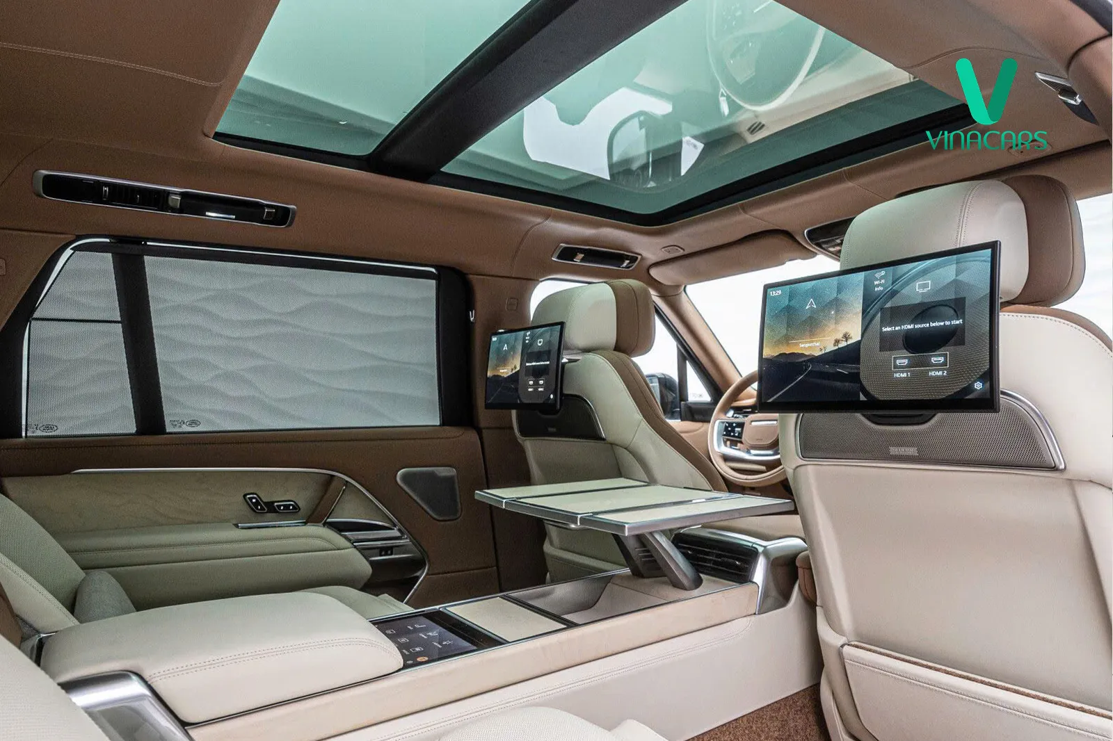 Dù sở hữu kích thước đồ sộ, chiếc xe vẫn cho thấy sự linh hoạt đáng ngạc nhiên nhờ hệ thống treo khí nén tiên tiến, có khả năng điều chỉnh độ cao gầm. Range Rover SV Autobiography LWB 2024 không chỉ là một chiếc SUV sang trọng mà còn là một cỗ máy mạnh mẽ, sẵn sàng chinh phục mọi hành trình.
